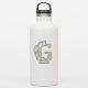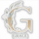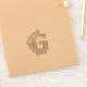 Letter G monogram floral. Letter G in golden brown texture accented with green watercolor compound leaves, flower blossoms and melted gold splashes. Personalized with name in matching font.