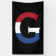 G Monogram overlaid on Netherlands flag on black Banner