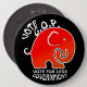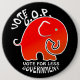 Proclaim your conservative political position loud and clear w/ this cool election button. The cute, bright red elephant & white text stand out boldly on a black background. Caption: "Vote G.O.P. - Vote For Less Government". Buy several & spread them around to help promote Votes for the political party that represents the Goverment of the People (G.O.P.)!