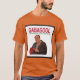 My 11 yo wore adult XL (5’7” 165#). The 8yo is small framed. She wore adult small and tied it in the back. Grandma wore adult large with long sleeve shirt underneath. Tall girl adult medium. Dark haired male adult large. Good quality dark Heather gray, Gildan brand shirt. -it was next up from basic choice and cost about $20 per shirt. Not too thick or thin. Washed and dried well, no major shrinkage. Not see-through. Can wear a bra under it fine. Screen print is just as shown and well done, front and back.