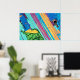 Fun bright artwork that really captures the mood I’m going for! Pop art with cyberpunk energy. A little sweet but also spicy. This art is the perfect size and vibe for our art gallery wall. The printing looks great, high quality with vibrant colors! I went with the semi-gloss finish, which adds a little extra shine and thickness to the print making it excellent for high-traffic areas like the staircase wall.