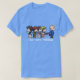 My 11 yo wore adult XL (5’7” 165#). The 8yo is small framed. She wore adult small and tied it in the back. Grandma wore adult large with long sleeve shirt underneath. Tall girl adult medium. Dark haired male adult large. Good quality dark Heather gray, Gildan brand shirt. -it was next up from basic choice and cost about $20 per shirt. Not too thick or thin. Washed and dried well, no major shrinkage. Not see-through. Can wear a bra under it fine. Screen print is just as shown and well done, front and back.