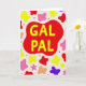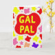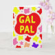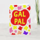 This greeting card puts the words “GAL PAL” front and center in bright neon yellow letters on an uneven red shape. Around it, a creamy off-white background is filled with rounded splashes of color like yellow, pink, orange, purple, and deep red. Small round dots in purple, red, and yellow are scattered between the larger shapes, like little bits of confetti. The overall look feels upbeat and friendly, like a fun note you’d give to someone who always has your back. The lettering is thick and easy to read, and it sits right in the middle so the message is the first thing you notice. It’s a sweet way to say “I love you as a friend” and to celebrate the kind of closeness that matters all year. Give it to your favorite friend to share a little extra care on Valentine’s Day 🥰❤️.