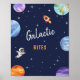 A cute and customizable outer space themed birthday sign featuring watercolor illustrations of the galaxy, stars, planets, a rocket ship and, an astronaut. Perfect for children who love a blast of a galactic adventure on their birthday.