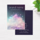 Earring product display card with your brand in a modern, minimal font on a pastel colored glitter cloud background with pink splatter. Customizable text and logo on the back.