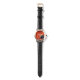 Has heft and feel of expensive stainless steel quartz watches. Good band with safety catch. I removed links, which is easy because engraved arrows show direction to push the linking pins. As always by this seller, the image (a railroad logo) is a perfect reproduction of my emailed image, and is precisely spaced and aligned.