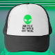 Embrace extraterrestrial curiosity with this captivating trucker hat featuring a striking green alien head. Boldly emblazoned with the phrase "Ask Me If The Truth Is Out There," it ignites conversation and invites exploration into the mysteries of the universe. Perfect for believers and skeptics alike, this hat combines style with a sense of wonder, making it a must-have accessory for UFO enthusiasts and sci-fi aficionados. Elevate your wardrobe with a touch of cosmic intrigue and join the quest for answers with every wear.