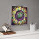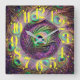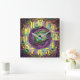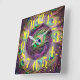 This purple, gold, green, and peacock feather design provides a burst of color as an easy-to-read clock.
