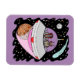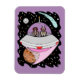 With robot co-pilot at his side, a human takes a joy ride past an orange planet and through the star-filled galaxy in this fun sci-fi art by Richard H. Fay. This work originally appeared, as a black and white interior illustration, in SPACEPORTS & SPIDERSILK, February 2021.