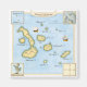 This faux-antique map of the Galapagos Islands is decorated with tiny sailing ships in the style of the British Navy during the Napoleonic Wars or Victorian Era and a border containing drawings of native wildlife.