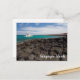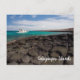 Postcard featuring a classic photo of the Galapagos Islands, with black lava rock and the turquoise water