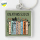 Introducing a vibrant and cheerful scripture keychain highlighting Galatians 5:22-23. This delightful accessory features a design adorned with books symbolizing the fruits of the spirit.