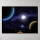 A 100% Photoshop peice. Two gas giants, and another unknown planet slowy orbit there star as a galaxy forms in the back ground.