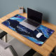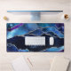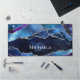 This galaxy inspired monogram agate desk mat is great for gamers, with an outer space design in a dark blue and purple agate marble geode pattern with silver glitter veins.