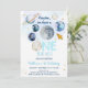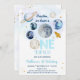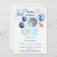 Galaxy Blue Gold Outer Space First Birthday Invitation