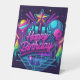 This design consists of a neon-lit background with glow-in-the-dark accents and "Happy Birthday" typography.