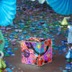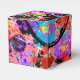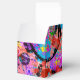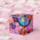 If color energizes you like it does me, then these favor boxes are for you. Covered with a digital graffiti that I designed, it has shades of coral, orange, lavender, purple, turquoise, midnight blue, white, yellow, lime green, pink, black and more. The layers of colors and varying opacity make for fun favor boxes.