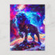 A majestic lion with a glowing blue mane, standing proudly against a backdrop of the galaxy, radiating power and cosmic elegance.