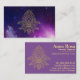 * This mystical unique business card is Celestial, Cosmic and has a gorgeous stunning Universe Nebula in Outer Space. The colors of the star laden image include indigo magenta and blue. This outer space celestial background has a Gold Hamsa Style Sacred Geometry Flowing Geometric Symbol overlaid on top of a deep magenta violet universe nebula celestial star and galaxy background. The effect is both unique and distinctive. This business card can be described as Spiritual, New Age, Metaphysical and Astrological business card. *