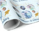 This adorable wrapping paper features features colorful planets with faux gold foil stars.