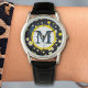 Galaxy Sky Daisy Flowers Monogram Letter Dark Blue Watch