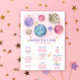 WATERCOLOR Magical galaxy outer space themed birthday invitation. Planets and stars in pink, purple, gold colorway.