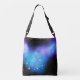Galaxy crossbody bag with a cosmic splash of blue and purple nebula space clouds and sparkling stars. ♡ Idyllfire