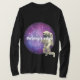 Graphic artwork for space fans, purple and black with floating astronaut.