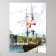 Old-style Galleon made ready for filming at Charlestown Harbour. From original watercolour by Christine Hudson. (Sailing boats, old and new, and Cornish harbours, feature much in my apocalyptic novel, A Time To Run (Colin Hudson), now available in Kindle and eBook format).