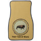 A galloping bison is painted on the skin side of a beaver pelt stretched on a willow hoop. Add your own text. The bison (Bison bison), the largest land mammal in North America, is considered a keystone species: they once roamed the continent in great herds, and their grazing pressure helped shape the ecology of the Great Plains. Two subspecies or ecotypes have been described: the plains bison (Bison bison bison), smaller in size and with a more rounded hump, and the wood bison (Bison bison athabascae) – the larger of the two and having a taller, square hump. The bison is a relative newcomer to North America, having originated in Eurasia and migrated over the Bering Strait About 10,000 years ago it replaced the steppe bison (Bison priscus), a previous immigrant that was much larger. It is thought that the steppe bison became extinct due to a changing ecosystem and hunting pressure following the development of the Clovis point and related technology, and improved hunting skills. During this same period, other megafauna vanished and were replaced to some degree by immigrant Eurasian animals that were better adapted to predatory humans. The extant bison, technically a dwarf form, was one of these animals. There were once an estimated 20-30 million bison, also referred to as buffalo, roaming North America. Their range once roughly comprised a triangle between the Great Bear Lake in Canada's far northwest, south to the Mexican states of Durango and Nuevo León, and east along the western boundary of the Appalachian Mountains. The first thoroughfares of North America, except for the time-obliterated paths of mastodon or musko, were the traces made by bison and deer in seasonal migration and between feeding grounds and salt licks. Many of these routes, hammered by countless hoofs instinctively following watersheds and the crests of ridges in avoidance of lower places' summer muck and winter snowdrifts, were followed by Native Americans and were invaluable to explorers.. The term "buffalo" may be considered a misnomer for this animal, as it is only distantly related to either of the two "true buffalo," the Asian water buffalo and the African buffalo. However, "bison" is a Greek word meaning ox-like animal, while "buffalo" originated with the French fur trappers who called these massive beasts bœufs, meaning ox or bullock – so both names, "bison" and "buffalo," have a similar meaning. In reference to this animal, the term "buffalo," which dates to 1635, has a much longer history than the term "bison," which was first recorded in 1774.The American bison is more closely related to the wisent or European bison. Unregulated shooting of bison, which culminated in mass slaughters during the 1870s, reduced the population to 1,091 in 1889. Today, approximately 500,000 bison live across North America. Most are not pure bison but rather have been cross-bred with cattle in the past and are raised as livestock on ranches. Fewer than 30,000 bison are in conservation herds, and fewer than 5,000 are free-ranging and disease-free. Today bison are ecologically extinct throughout most of their historic range, except for a few national parks and other small wildlife areas. Yellowstone National Park has the largest population of free-roaming plains bison (about 4,000), and Wood Buffalo National Park has the largest population of free-roaming wood bison (about 10,000). A bison has a shaggy, long, dark brown winter coat, and a lighter weight, lighter brown summer coat. The winter coat is so thick and well insulated that snow can cover its backs without melting. Male bison are slightly larger than females. Plains bison typically weigh from 700 to 2,200 lbs. The heaviest wild bull ever recorded weighed 2,800 lbs. When raised in captivity and farmed for meat, the bison can grow unnaturally heavy and the largest semi-domestic bison weighed 3,800 lbs. The heads and forequarters are massive, and both sexes have short, curved horns that can grow up to 2 feet long, which they use in fighting for status within the herd and for defense. Bison are herbivores, grazing on the grasses and sedges of the North American prairies. Their daily schedule involves two-hour periods of grazing, resting and cud chewing, then moving to a new location to graze again. This regular motion ensures that bison seldom overgraze an area. Bison often rub and roll on the ground creating shallow, saucer-like depressions called wallows. Bison roll in wallow, wet or dry, covering themselves with dust or mud. Past explanations and current hypotheses suggested for wallowing behavior include grooming behavior associated with shedding, male-male interaction (typically rutting behavior), social behavior for group cohesion, play behavior, relief from skin irritation due to biting insects; reduction of ticks and lice; and thermoregulation. Wallows were once a common feature of the plains. In winter, bison can dig through deep snow with their heads to reach the vegetation below. Bison have poor eyesight, but have acute hearing and an excellent sense of smell. Bison can reach speeds of up to 35 mph. Bison have a life expectancy of approximately 15 years in the wild and up to 25 years in captivity. Bison mate in late spring and summer in more open plain areas. During fall and winter, bison tend to gather in more wooded areas. During this time, bison partake in horning behaviors. They will rub their horns against trees, young saplings and even telephone poles. Aromatic trees like cedars and pine seem to be preferred. Horning appears to be associated with insect defense as it occurs most often in the fall when the insect population is at its highest. Cedar and pines emit an aroma after bison horn them and this seems to be used as a deterrent for insects. While often secure from predation due to their size and strength, in some areas, bison are regularly predated by wolves. Wolf predation typically peaks in late spring and early summer, with attacks usually being c