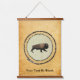 A galloping bison is painted on the skin side of a beaver pelt stretched on a willow hoop. Everything is superimposed on an old paper, or parchment, background image. Customize by adding your own text.