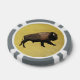A digital painting of the American bison, or buffalo, superimposed on a brain-tan leather background image. The bison (Bison bison), the largest land mammal in North America, is considered a keystone species: they once roamed the continent in great herds, and their grazing pressure helped shape the ecology of the Great Plains. Two subspecies or ecotypes have been described: the plains bison (Bison bison bison), smaller in size and with a more rounded hump, and the wood bison (Bison bison athabascae) – the larger of the two and having a taller, square hump. The bison is a relative newcomer to North America, having originated in Eurasia and migrated over the Bering Strait About 10,000 years ago it replaced the steppe bison (Bison priscus), a previous immigrant that was much larger. It is thought that the steppe bison became extinct due to a changing ecosystem and hunting pressure following the development of the Clovis point and related technology, and improved hunting skills. During this same period, other megafauna vanished and were replaced to some degree by immigrant Eurasian animals that were better adapted to predatory humans. The extant bison, technically a dwarf form, was one of these animals. There were once an estimated 20-30 million bison, also referred to as buffalo, roaming North America. Their range once roughly comprised a triangle between the Great Bear Lake in Canada's far northwest, south to the Mexican states of Durango and Nuevo León, and east along the western boundary of the Appalachian Mountains. The first thoroughfares of North America, except for the time-obliterated paths of mastodon or musko, were the traces made by bison and deer in seasonal migration and between feeding grounds and salt licks. Many of these routes, hammered by countless hoofs instinctively following watersheds and the crests of ridges in avoidance of lower places' summer muck and winter snowdrifts, were followed by Native Americans and were invaluable to explorers.. The term "buffalo" may be considered a misnomer for this animal, as it is only distantly related to either of the two "true buffalo," the Asian water buffalo and the African buffalo. However, "bison" is a Greek word meaning ox-like animal, while "buffalo" originated with the French fur trappers who called these massive beasts bœufs, meaning ox or bullock – so both names, "bison" and "buffalo," have a similar meaning. In reference to this animal, the term "buffalo," which dates to 1635, has a much longer history than the term "bison," which was first recorded in 1774.The American bison is more closely related to the wisent or European bison. Unregulated shooting of bison, which culminated in mass slaughters during the 1870s, reduced the population to 1,091 in 1889. Today, approximately 500,000 bison live across North America. Most are not pure bison but rather have been cross-bred with cattle in the past and are raised as livestock on ranches. Fewer than 30,000 bison are in conservation herds, and fewer than 5,000 are free-ranging and disease-free. Today bison are ecologically extinct throughout most of their historic range, except for a few national parks and other small wildlife areas. Yellowstone National Park has the largest population of free-roaming plains bison (about 4,000), and Wood Buffalo National Park has the largest population of free-roaming wood bison (about 10,000). A bison has a shaggy, long, dark brown winter coat, and a lighter weight, lighter brown summer coat. The winter coat is so thick and well insulated that snow can cover its backs without melting. Male bison are slightly larger than females. Plains bison typically weigh from 700 to 2,200 lbs. The heaviest wild bull ever recorded weighed 2,800 lbs. When raised in captivity and farmed for meat, the bison can grow unnaturally heavy and the largest semi-domestic bison weighed 3,800 lbs. The heads and forequarters are massive, and both sexes have short, curved horns that can grow up to 2 feet long, which they use in fighting for status within the herd and for defense. Bison are herbivores, grazing on the grasses and sedges of the North American prairies. Their daily schedule involves two-hour periods of grazing, resting and cud chewing, then moving to a new location to graze again. This regular motion ensures that bison seldom overgraze an area. Bison often rub and roll on the ground creating shallow, saucer-like depressions called wallows. Bison roll in wallow, wet or dry, covering themselves with dust or mud. Past explanations and current hypotheses suggested for wallowing behavior include grooming behavior associated with shedding, male-male interaction (typically rutting behavior), social behavior for group cohesion, play behavior, relief from skin irritation due to biting insects; reduction of ticks and lice; and thermoregulation. Wallows were once a common feature of the plains. In winter, bison can dig through deep snow with their heads to reach the vegetation below. Bison have poor eyesight, but have acute hearing and an excellent sense of smell. Bison can reach speeds of up to 35 mph. Bison have a life expectancy of approximately 15 years in the wild and up to 25 years in captivity. Bison mate in late spring and summer in more open plain areas. During fall and winter, bison tend to gather in more wooded areas. During this time, bison partake in horning behaviors. They will rub their horns against trees, young saplings and even telephone poles. Aromatic trees like cedars and pine seem to be preferred. Horning appears to be associated with insect defense as it occurs most often in the fall when the insect population is at its highest. Cedar and pines emit an aroma after bison horn them and this seems to be used as a deterrent for insects. While often secure from predation due to their size and strength, in some areas, bison are regularly predated by wolves. Wolf predation typically peaks in late spring and early summer, with attacks usually being con