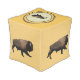 On the top a galloping American bison, or buffalo, painted on the skin side of a beaver pelt stretched on a willow hoop. More bison circle around the sides. The bison (Bison bison), the largest land mammal in North America, is considered a keystone species: they once roamed the continent in great herds, and their grazing pressure helped shape the ecology of the Great Plains. Two subspecies or ecotypes have been described: the plains bison (Bison bison bison), smaller in size and with a more rounded hump, and the wood bison (Bison bison athabascae) – the larger of the two and having a taller, square hump. The bison is a relative newcomer to North America, having originated in Eurasia and migrated over the Bering Strait About 10,000 years ago it replaced the steppe bison (Bison priscus), a previous immigrant that was much larger. It is thought that the steppe bison became extinct due to a changing ecosystem and hunting pressure following the development of the Clovis point and related technology, and improved hunting skills. During this same period, other megafauna vanished and were replaced to some degree by immigrant Eurasian animals that were better adapted to predatory humans. The extant bison, technically a dwarf form, was one of these animals. There were once an estimated 20-30 million bison, also referred to as buffalo, roaming North America. Their range once roughly comprised a triangle between the Great Bear Lake in Canada's far northwest, south to the Mexican states of Durango and Nuevo León, and east along the western boundary of the Appalachian Mountains. The first thoroughfares of North America, except for the time-obliterated paths of mastodon or musko, were the traces made by bison and deer in seasonal migration and between feeding grounds and salt licks. Many of these routes, hammered by countless hoofs instinctively following watersheds and the crests of ridges in avoidance of lower places' summer muck and winter snowdrifts, were followed by Native Americans and were invaluable to explorers.. The term "buffalo" may be considered a misnomer for this animal, as it is only distantly related to either of the two "true buffalo," the Asian water buffalo and the African buffalo. However, "bison" is a Greek word meaning ox-like animal, while "buffalo" originated with the French fur trappers who called these massive beasts bœufs, meaning ox or bullock – so both names, "bison" and "buffalo," have a similar meaning. In reference to this animal, the term "buffalo," which dates to 1635, has a much longer history than the term "bison," which was first recorded in 1774.The American bison is more closely related to the wisent or European bison. Unregulated shooting of bison, which culminated in mass slaughters during the 1870s, reduced the population to 1,091 in 1889. Today, approximately 500,000 bison live across North America. Most are not pure bison but rather have been cross-bred with cattle in the past and are raised as livestock on ranches. Fewer than 30,000 bison are in conservation herds, and fewer than 5,000 are free-ranging and disease-free. Today bison are ecologically extinct throughout most of their historic range, except for a few national parks and other small wildlife areas. Yellowstone National Park has the largest population of free-roaming plains bison (about 4,000), and Wood Buffalo National Park has the largest population of free-roaming wood bison (about 10,000). A bison has a shaggy, long, dark brown winter coat, and a lighter weight, lighter brown summer coat. The winter coat is so thick and well insulated that snow can cover its backs without melting. Male bison are slightly larger than females. Plains bison typically weigh from 700 to 2,200 lbs. The heaviest wild bull ever recorded weighed 2,800 lbs. When raised in captivity and farmed for meat, the bison can grow unnaturally heavy and the largest semi-domestic bison weighed 3,800 lbs. The heads and forequarters are massive, and both sexes have short, curved horns that can grow up to 2 feet long, which they use in fighting for status within the herd and for defense. Bison are herbivores, grazing on the grasses and sedges of the North American prairies. Their daily schedule involves two-hour periods of grazing, resting and cud chewing, then moving to a new location to graze again. This regular motion ensures that bison seldom overgraze an area. Bison often rub and roll on the ground creating shallow, saucer-like depressions called wallows. Bison roll in wallow, wet or dry, covering themselves with dust or mud. Past explanations and current hypotheses suggested for wallowing behavior include grooming behavior associated with shedding, male-male interaction (typically rutting behavior), social behavior for group cohesion, play behavior, relief from skin irritation due to biting insects; reduction of ticks and lice; and thermoregulation. Wallows were once a common feature of the plains. In winter, bison can dig through deep snow with their heads to reach the vegetation below. Bison have poor eyesight, but have acute hearing and an excellent sense of smell. Bison can reach speeds of up to 35 mph. Bison have a life expectancy of approximately 15 years in the wild and up to 25 years in captivity. Bison mate in late spring and summer in more open plain areas. During fall and winter, bison tend to gather in more wooded areas. During this time, bison partake in horning behaviors. They will rub their horns against trees, young saplings and even telephone poles. Aromatic trees like cedars and pine seem to be preferred. Horning appears to be associated with insect defense as it occurs most often in the fall when the insect population is at its highest. Cedar and pines emit an aroma after bison horn them and this seems to be used as a deterrent for insects. While often secure from predation due to their size and strength, in some areas, bison are regularly predated by wolves. Wolf predation typically peaks in late spring