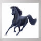 Original fine art design of a galloping black horse by designer Carolyn McFann of Two Purring Cats Studio on a poster for equestrian sport fans.
