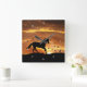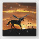 A galloping horse silhouetted against a fiery southwestern sunset, with birds soaring in the vibrant sky—a stunning image for horse lovers.