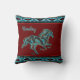 Personalize this Unique "One Of A Kind" Horse Throw Pillow. It Features a Galloping Horse Silhouette in Turquoise, Black & Gold on a Maroon Background...Surrounded by a Southwest Turquoise, White and Rust Border!