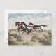 This postcard features an original artwork of three paint horses galloping across a Southwestern desert landscape, created in Vue by digital artist Jayne Wilson.