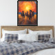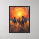 Capture the raw energy and freedom of the wild west with this stunning Post-Impressionist style painting. A beautiful herd of dark wild horses gallops powerfully toward the viewer through an open field. Above them, a magnificent sunset unfolds with thick, expressive impasto brushstrokes in brilliant shades of golden yellow, fiery orange, and deep red. The swirling sky creates a mesmerizing, dreamlike atmosphere that contrasts perfectly with the dynamic movement of the horses. This striking, warm-toned artwork makes an incredible statement piece for horse lovers, equestrian enthusiasts, or anyone seeking a bold, nature-inspired addition to their home decor.