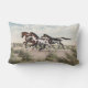This lumbar pillow features an original artwork of three paint horses galloping across a desert landscape by artist Jayne Wilson. This pillow will fit into any southwestern-themed decor and will be appreciated by horse lovers.
