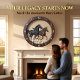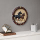 Bring a sense of power and motion to your walls with this high-energy equestrian wall clock. The design features a realistic high-definition image of a black stallion and a bay horse galloping over rocky terrain, set against a warm tan backdrop. While the outer frame and center beautifully capture the look of rich, dark wood grain, this is a lightweight graphic timepiece rather than actual heavy timber. Bold, golden numeric markers provide a sophisticated contrast, ensuring the time is easy to read from a distance. The artwork utilizes shadows and perspective to create a 3D-style depth that makes the horses appear to move off the surface. It is a polished, professional accessory for any horse lover looking to enhance a study, living room, or ranch-style home without the maintenance of real wood.
