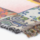 A quality printed throw has its advantages. This is a much finer weave throw than its loopier cousins, and though lighter, it is worth the investment for custom room accessorizing. The back is much prettier than the typical brown, and the fringe on the long sides very vivid, the selvage nicely done. Before photographing, I washed the throw in cold water, delicate, with a thicker woven throw the same size. On tumble dry low, this throw was dry in half the time as the other. This is a very practical quality if you use throws for furniture covers or to wrap up in frequently. The sleekness of the fabric makes it a great layer for accenting or protecting without the feeling of sitting on too much stuff. Perfect for napping or when you feel a light chill coming on. The color printing is beautiful and on this fabric, matched the design and color of my Photoshop image. This is an advantage for blending room fabrics and colors. The fringe on the short sides prints the colors from the design image and therefore varies from the side fringe. I streaked a white fractal line through the plaid pattern to give the illusion of weaving. This printed as crisp as an illusory thread, and put some white in the short side fringe, showing another advantage of print vs loomed- for artistic purposes, line lines, detail, and color integrity can be planned and preserved. My loomed throws have color limitations and more of a needlepoint texture. Print throws reproduce an exact image. The throw felt a little stiff straight out of the package, but this went away in the first delicate wash. Of course I searched the wash water for ink or bleeding and there was none.