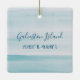 Gorgeous light blue ombre watercolor highlights the longitude and latitude coordinates of Galveston Island, Texas.