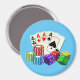 Gambling Casino Dice, Poker chips, playing Cards art round magnet