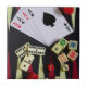 Gambling gaming casino, cards, dice, backgammon, dominoes, and poker pieces