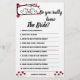 Game Card Do you really know The Bride Flyer