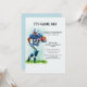 Kick off the party in style with this American football–inspired birthday invitation. The design shows a watercolor illustration of a football player in white and blue gear, jersey number 50, running with the ball. The headline “It's game day” adds a playful nod to the milestone. On the back the same design with the quote"Friends,Food, Football. Ideal for a 50th birthday. Easy to personalize with your own details.