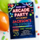 You can pick to download your Game On Arcade Party Birthday Invitation from 4 file types: PNG, JPG, Standard PDF, and Print PDF. These 4 file formats have been selected so they cover all your inviting needs. PNG and JPG are great for sending your invitation digitally and PDF and Print PDF are great if you want to print your invitation yourself.