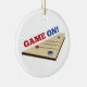 Lightweight, smooth, pure white ornament with nice sheen. Perfect size to be seen from across the room ... and to attract closer inspection! Price was great for ordering enough for the whole family! Clear, bold black design just as requested. Matches the order exactly. Just so nice!