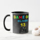 Game On Video Controller Gaming Birthday Mug. Gaming controller, custom name and age on a dark pattern.