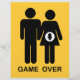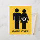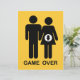 The universal man and woman symbols, holding hands, woman showing a womb/fetus, and with "Game Over" text caption. B/W design, on t-shirts, sweatshirts, cards, gifts.